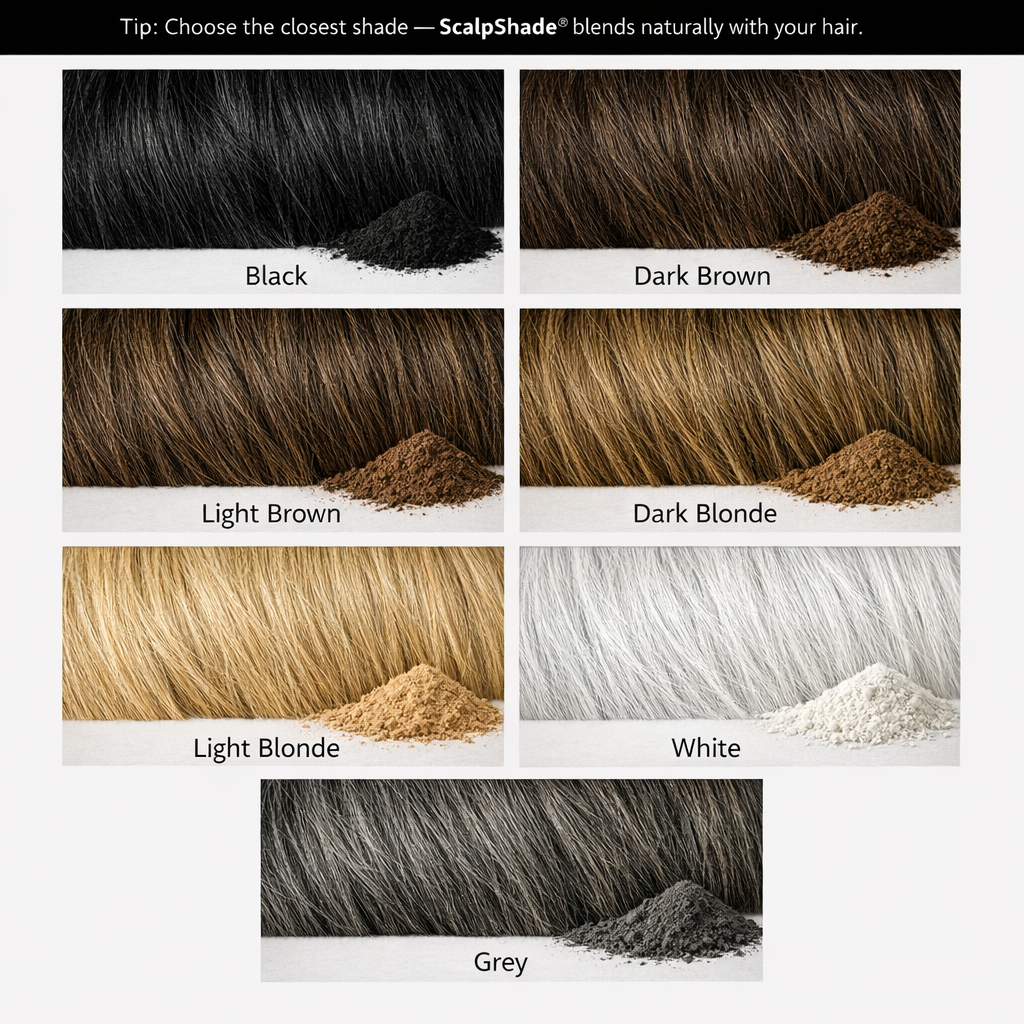 Matte mineral formula absorbs overhead light instead of reflecting it. Eliminates visible scalp problem under fluorescent bulbs.